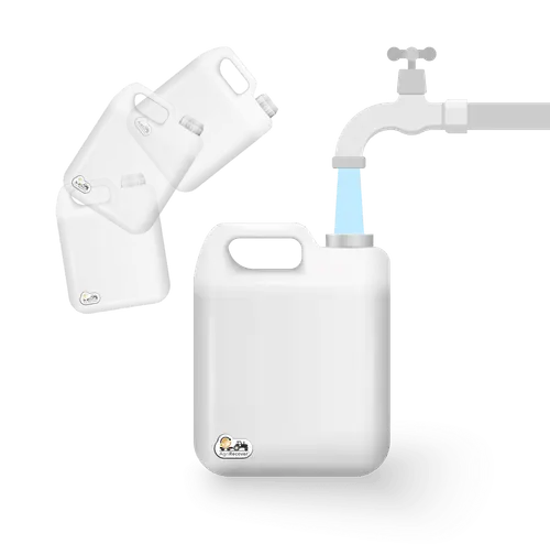 Spoel de verpakking meteen zodra ze leeg is. Dit kan machinaal of handmating. Spoel je handmatig? Vul de bus 1/3 met zuiver water en schud krachtig. Herhaal dit 3 keer.